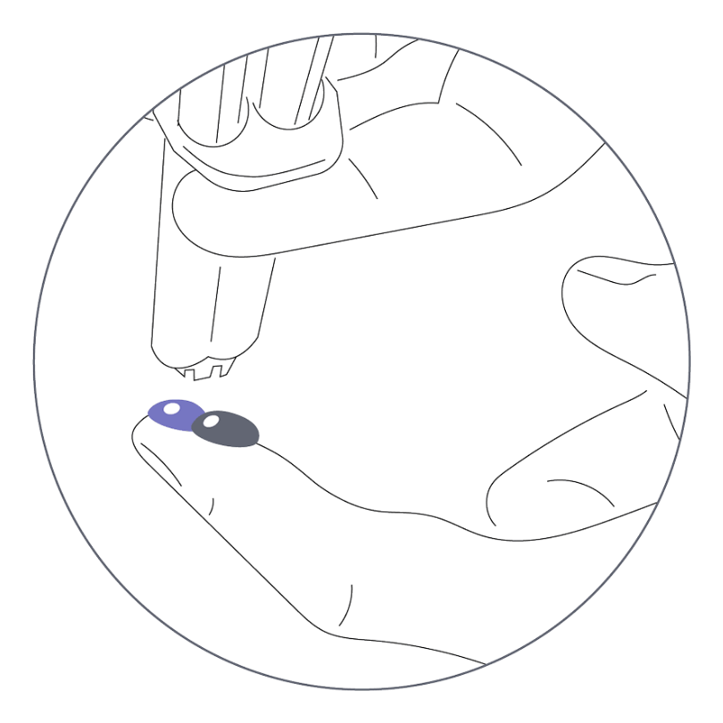 Gently press the plunger to get a pea-sized amount of both gels onto your finger.