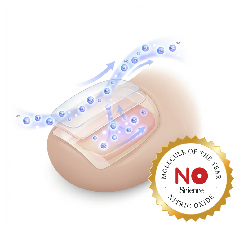 Nitric Oxide is a naturally occurring molecule in the body and plays a role in normal biological processes. In this formulation, it is generated at the moment of application using a dual-chamber system and delivered directly into the nail.