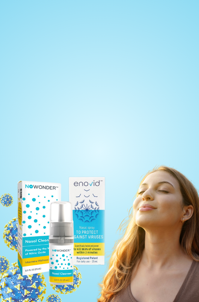 In 2025, Sanotize introduced NOWONDER™ Nasal Spray in the U.S. as a wellness nasal spray, providing the same trusted formulation, quality, and breakthrough nitric oxide technology as Enovid. Both NOWONDER™ and Enovid work to cleanse the nasal passages and help protect against airborne elements like viruses, bacteria, and allergens.